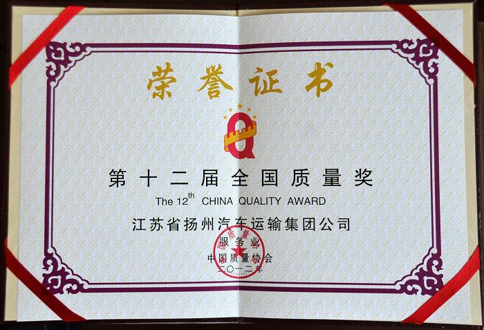 昨天上午,第十二屆全國(guó)追求卓越大會(huì)在北京京西賓館舉行。會(huì)上,集團(tuán)公司榮獲質(zhì)量經(jīng)營(yíng)管理最高榮譽(yù)——“全國(guó)質(zhì)量獎(jiǎng)”,全國(guó)僅6家單位獲此殊榮,也是全國(guó)交通客運(yùn)行業(yè)首家獲獎(jiǎng)單位。全國(guó)政協(xié)副主席張榕明、交通運(yùn)輸部副部長(zhǎng)高宏峰、中國(guó)質(zhì)量協(xié)會(huì)會(huì)長(zhǎng)賈福興為我司頒獎(jiǎng)。