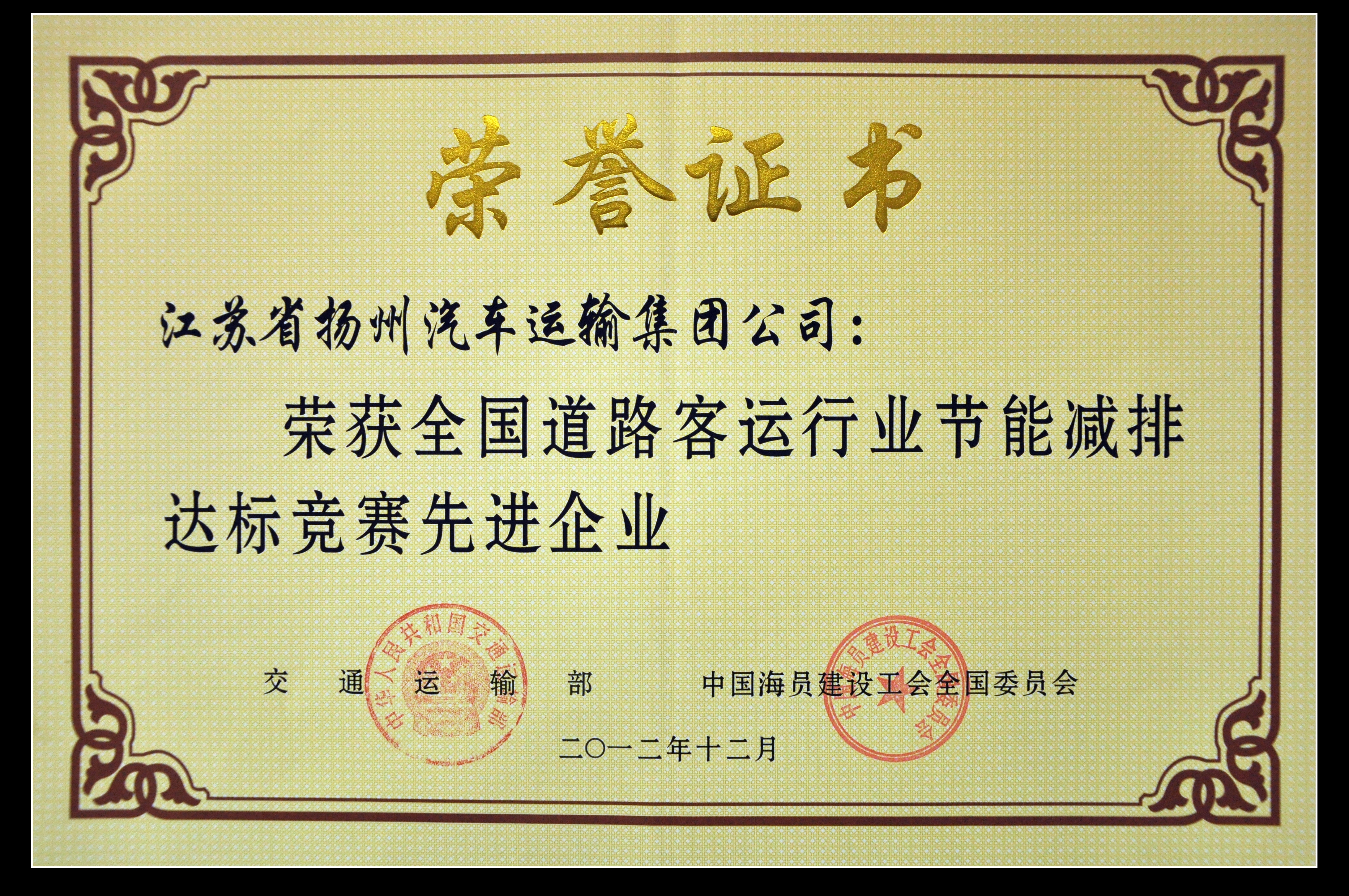 > 我司榮獲“全國道路客運行業(yè)節(jié)能減排達標競賽先進企業(yè)”稱號