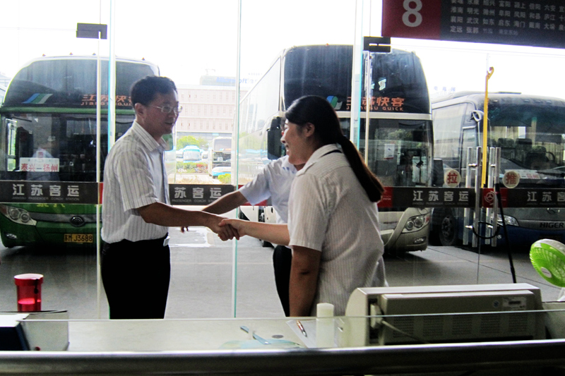 8月8日下午,市委常委、副市長(zhǎng)姚蘇華在市政協(xié)秘書(shū)長(zhǎng)、市交通運(yùn)輸局局長(zhǎng)王駿,市政府副秘書(shū)長(zhǎng)、政府辦主任湯天波,揚(yáng)州交通產(chǎn)業(yè)集團(tuán)董事長(zhǎng)凌衛(wèi)東、市運(yùn)管處處長(zhǎng)居遠(yuǎn)山等陪同下來(lái)到揚(yáng)州汽車東站慰問(wèn)高溫下戰(zhàn)斗在一線的干部職工。集團(tuán)公司領(lǐng)導(dǎo)吳忠俊、顧懷、萬(wàn)雷、陳家宏陪同慰問(wèn)。
