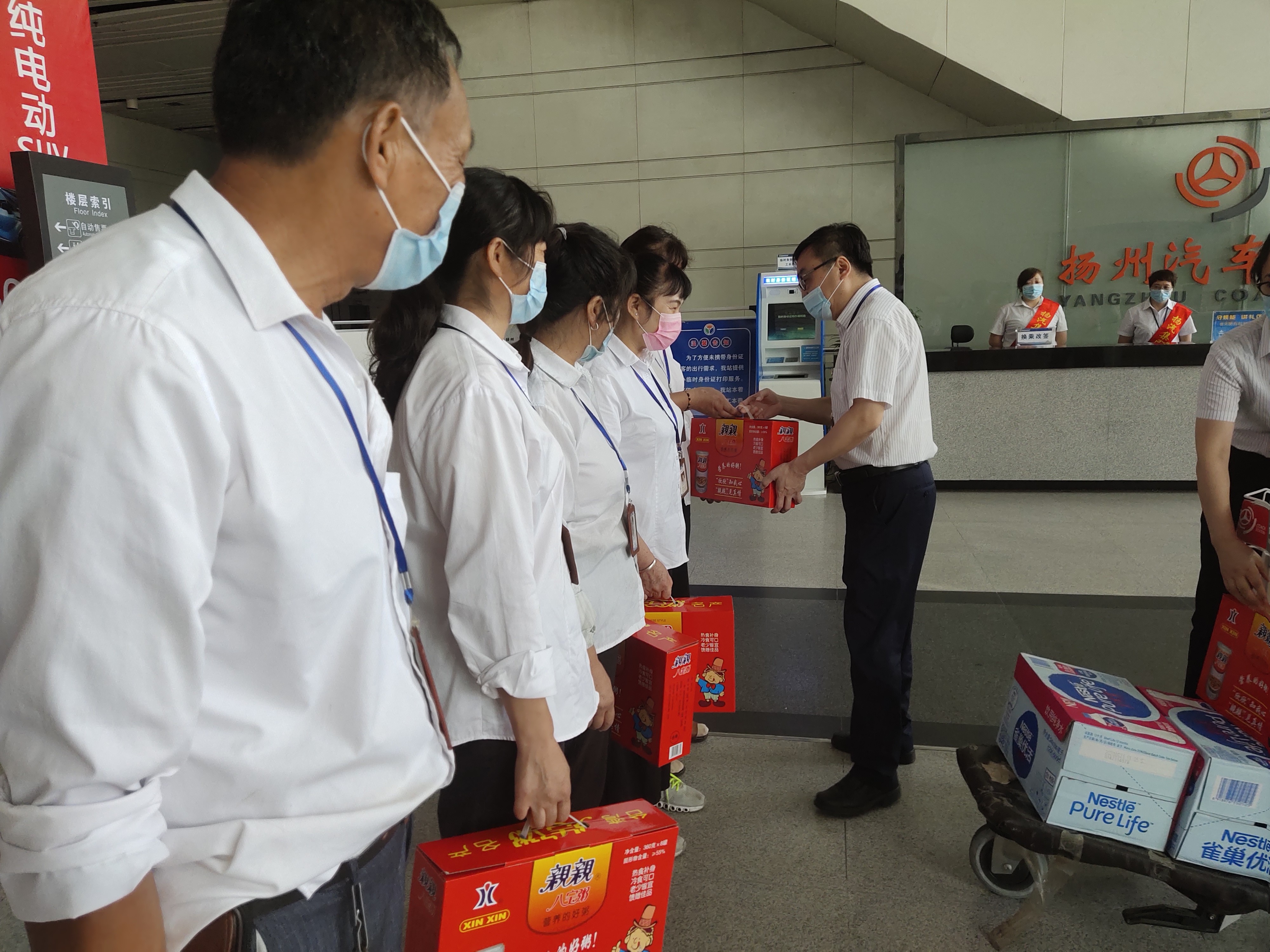 揚(yáng)州站:在疫情防控進(jìn)入常態(tài)化的情況下,揚(yáng)州站疫情防控工作絲毫沒(méi)有松懈,連日的高溫,給揚(yáng)州站疫情防控工作也帶來(lái)了挑戰(zhàn)。為了進(jìn)一步鼓勵(lì)一線職工的斗志,8月18日揚(yáng)州站組織了送涼爽慰問(wèn)活動(dòng),向高溫天氣中堅(jiān)守崗位的志愿者、保潔等一線職工送去防暑降溫慰問(wèn)品,在慰問(wèn)中叮囑職工注意防暑降溫、勞逸結(jié)合,做好安全保障措施,確保勞動(dòng)安全和身體健康。同時(shí)也進(jìn)一步勉勵(lì)他們更好的做好服務(wù)工作,為打造平安揚(yáng)州、幸福揚(yáng)州、精致?lián)P州做貢獻(xiàn)。