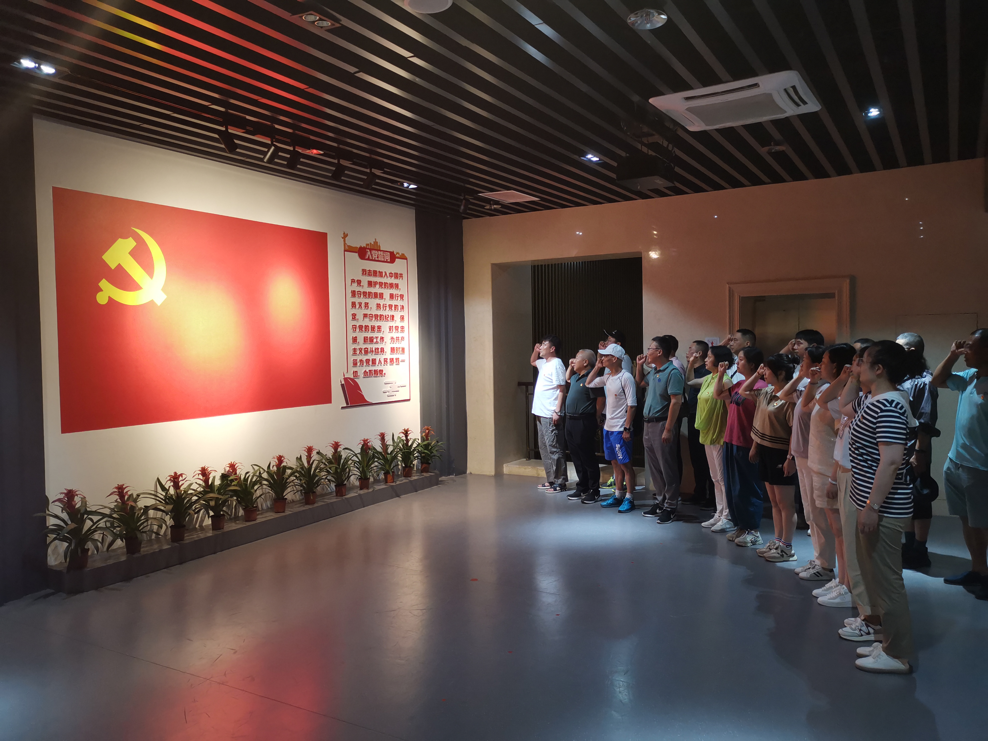 在紀念館內(nèi)的宣誓墻前,全體黨員向黨旗莊嚴宣誓,鏗鏘的誓言擲地有聲,以飽滿的激情和聲音發(fā)出了身為共產(chǎn)黨員的自豪感和使命感,激發(fā)著大家干事創(chuàng)業(yè)的澎湃熱情。